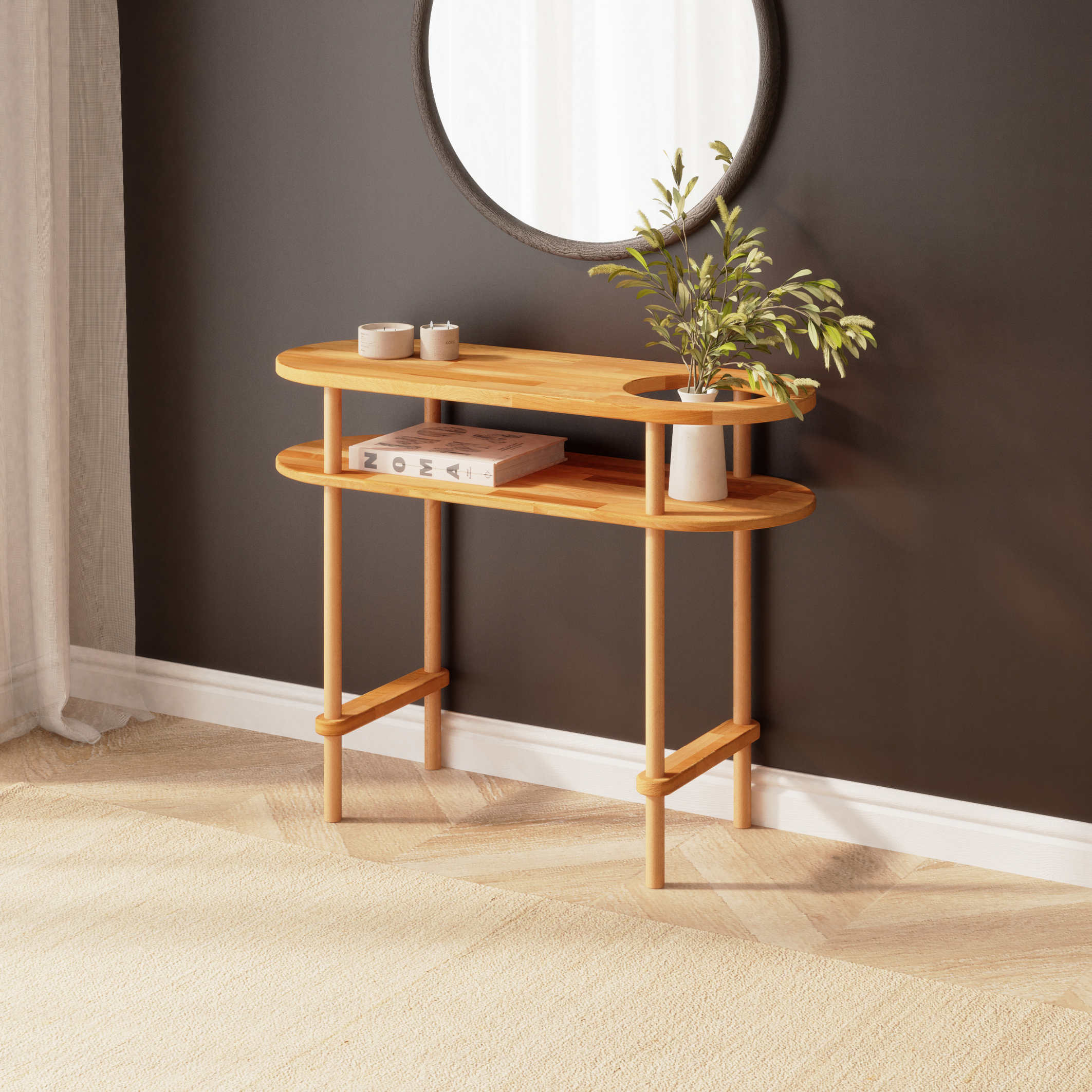 Ürünlerimiz kayın ağacından el işçiliği ile üretilmektedir. Tüm yüzeylere VOC Free (Sıfır Uçucu Organik Bileşen) sertifikalı reçine ve balmumlarından hazırlanmış özel yağlar ile uygulama yapılmıştır. Ürünler, ahşabın doğası gereği görsellere kıyasla ton ve desen farklılıkları gösterebilir. Doğal ahşap yüzeylerde minimal pürüzler olabilir. Ürün ölçülerinde (+/-) 1 – 3 mm farklar olabilir.