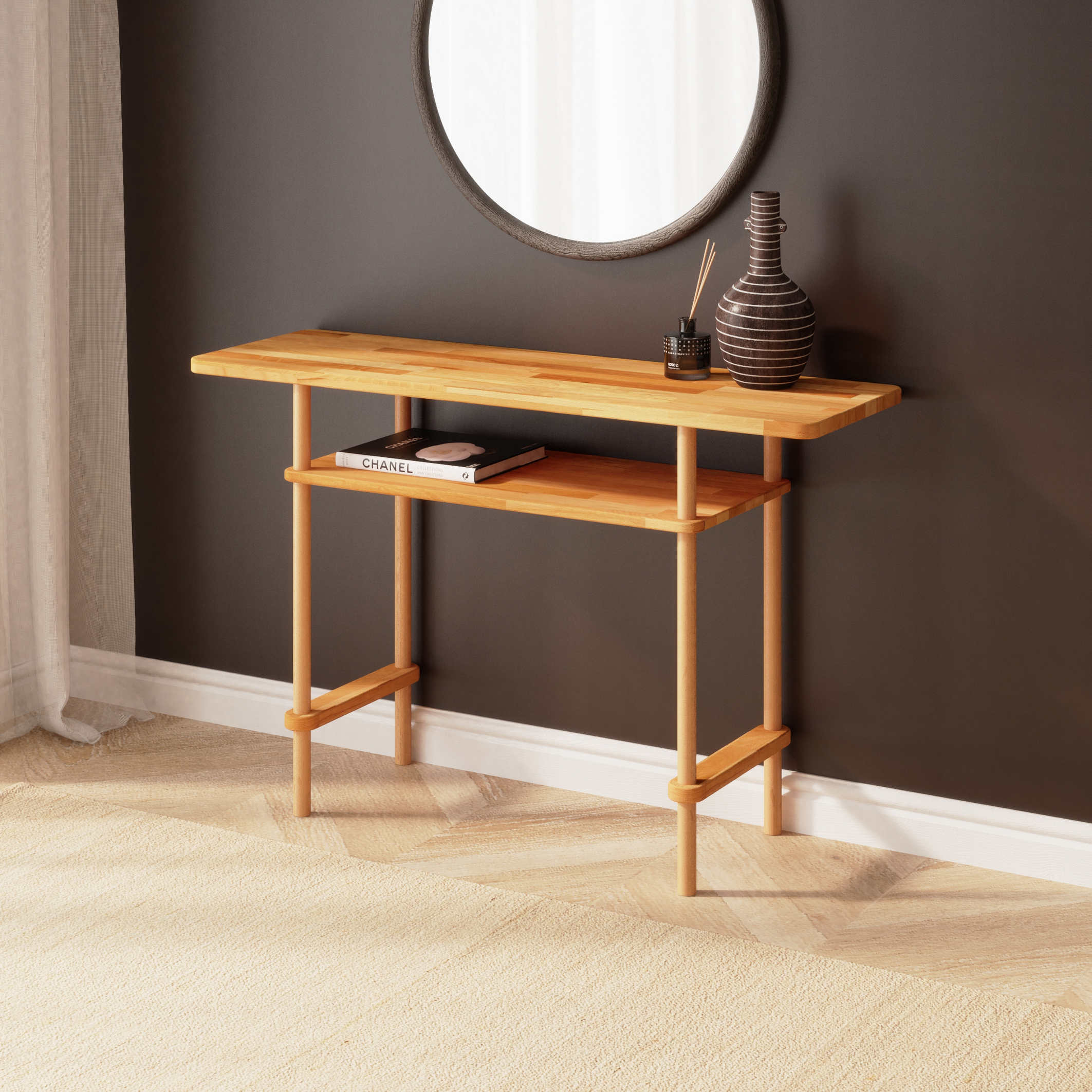 Ürünlerimiz kayın ağacından el işçiliği ile üretilmektedir. Tüm yüzeylere VOC Free (Sıfır Uçucu Organik Bileşen) sertifikalı reçine ve balmumlarından hazırlanmış özel yağlar ile uygulama yapılmıştır. Ürünler, ahşabın doğası gereği görsellere kıyasla ton ve desen farklılıkları gösterebilir. Doğal ahşap yüzeylerde minimal pürüzler olabilir. Ürün ölçülerinde (+/-) 1 – 3 mm farklar olabilir.
