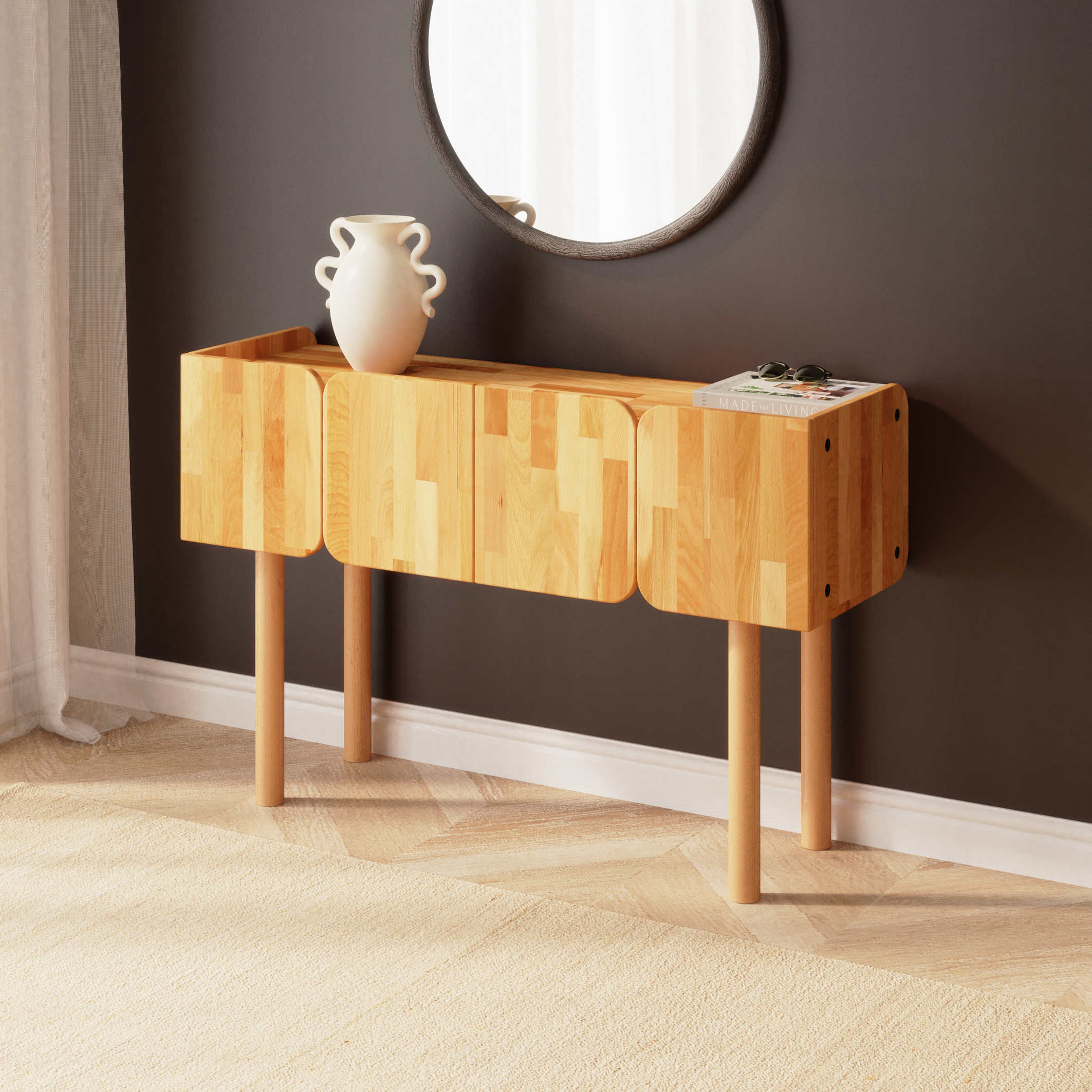 Ürünlerimiz kayın ağacından el işçiliği ile üretilmektedir. Tüm yüzeylere VOC Free (Sıfır Uçucu Organik Bileşen) sertifikalı reçine ve balmumlarından hazırlanmış özel yağlar ile uygulama yapılmıştır. Ürünler, ahşabın doğası gereği görsellere kıyasla ton ve desen farklılıkları gösterebilir. Doğal ahşap yüzeylerde minimal pürüzler olabilir. Ürün ölçülerinde (+/-) 1 – 3 mm farklar olabilir.