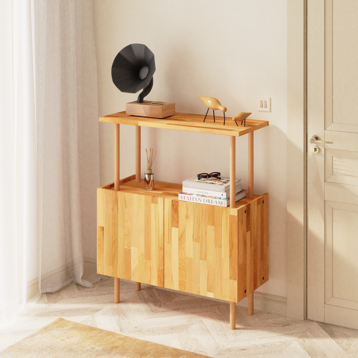 Ürünlerimiz kayın ağacından el işçiliği ile üretilmektedir. Tüm yüzeylere VOC Free (Sıfır Uçucu Organik Bileşen) sertifikalı reçine ve balmumlarından hazırlanmış özel yağlar ile uygulama yapılmıştır. Ürünler, ahşabın doğası gereği görsellere kıyasla ton ve desen farklılıkları gösterebilir. Doğal ahşap yüzeylerde minimal pürüzler olabilir. Ürün ölçülerinde (+/-) 1 – 3 mm farklar olabilir.